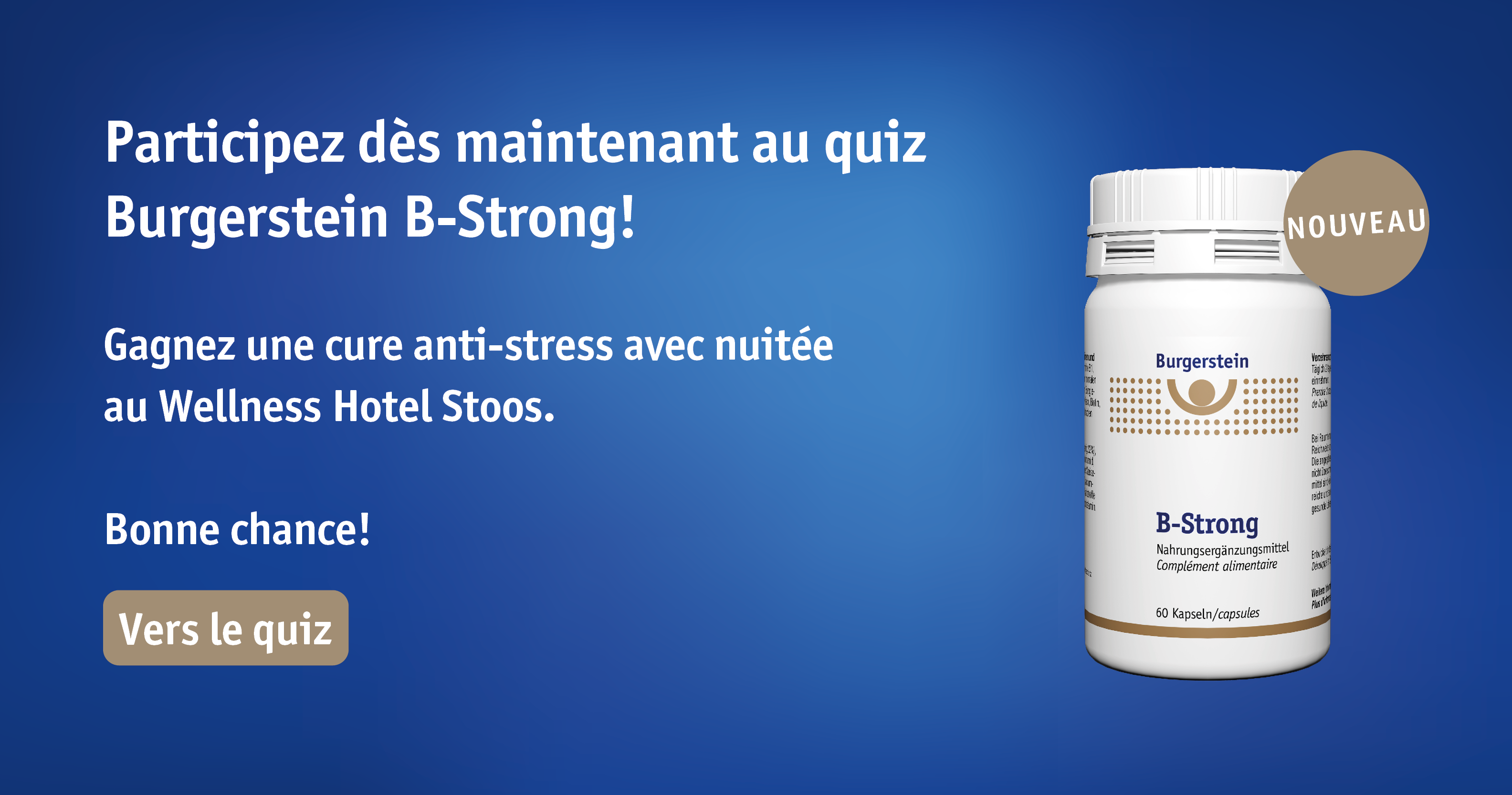Burgerstein B-Strong contient les huit vitamines du groupe B et du magnésium. Il est donc particulièrement riche, d’autant plus que de l’ashwagandha augmente son efficacité.